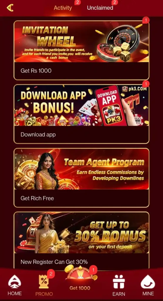 Firstly, one of the most attractive parts of Pak3 apk is its welcome bonus. When new users sign up, they receive a starting bonus that helps them begin playing without using much of their own money. In addition, this bonus gives players a chance to understand how the app works.